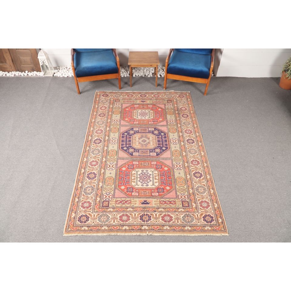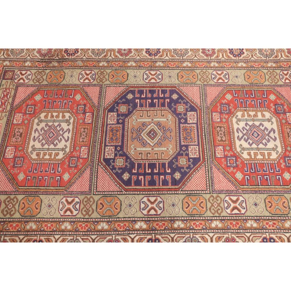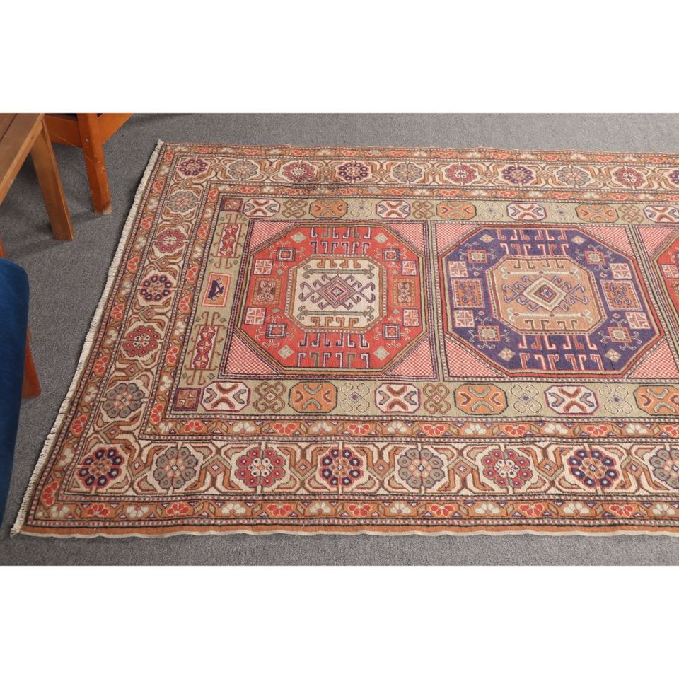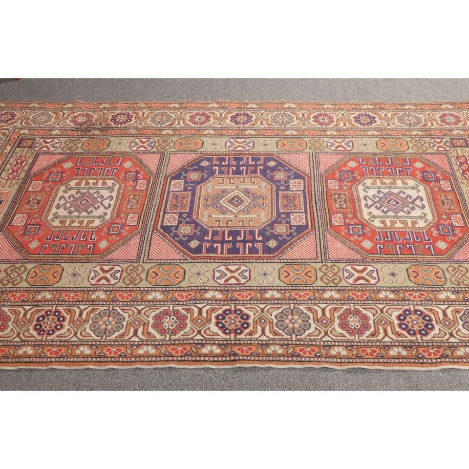 Tapis vintage, tapis turc 4,7x7,3 pieds, motif géométrique arc-en-ciel avec éléments floraux