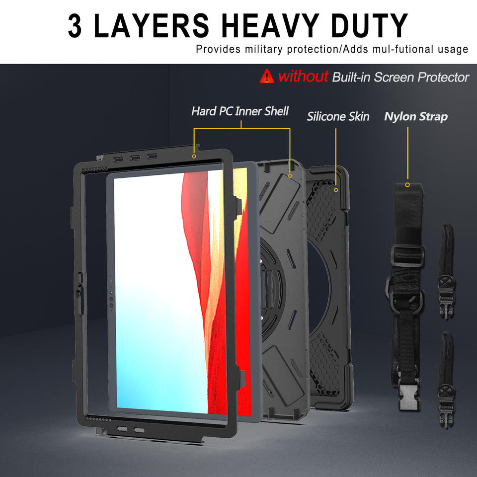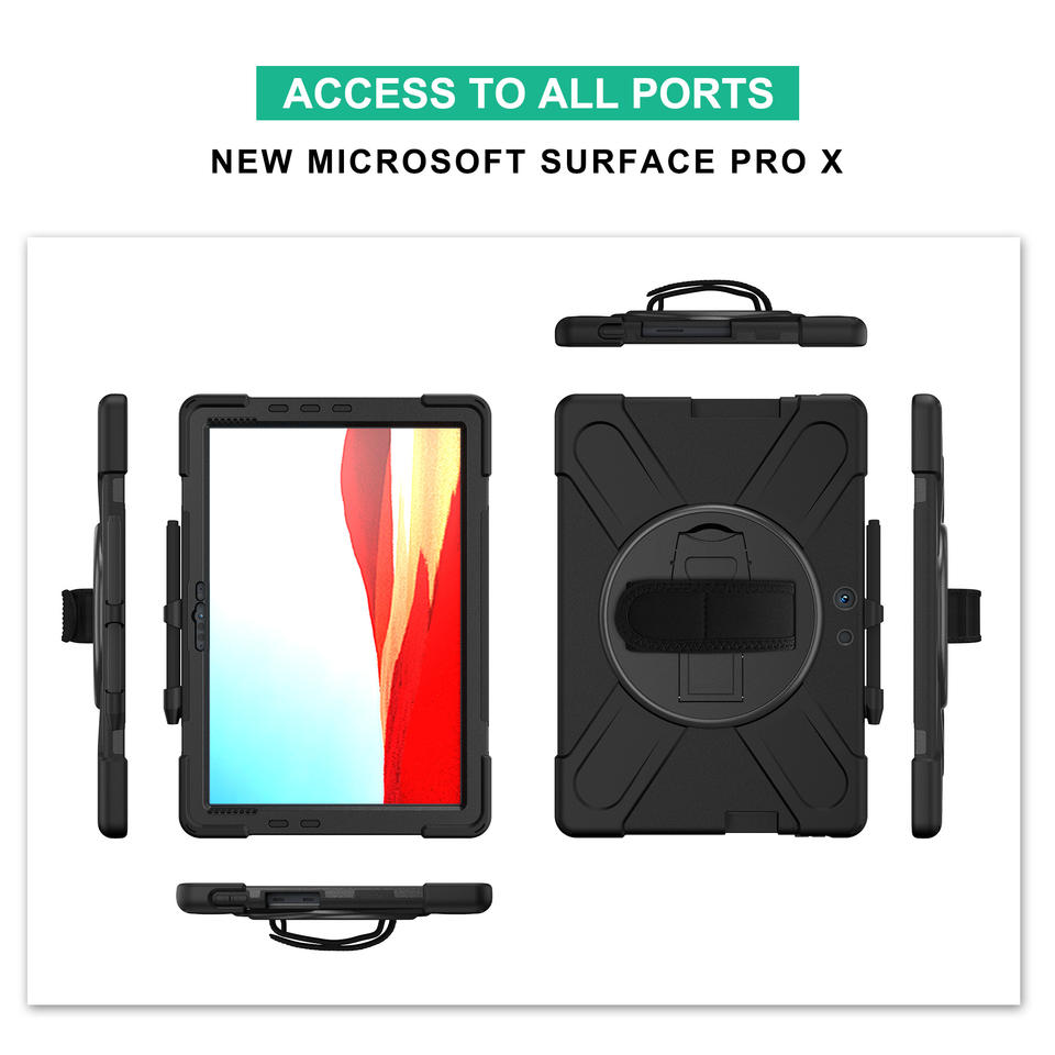 Keysion — étui à armure robuste pour Microsoft Surface Pro X 13 pouces, avec sangle à main et sangle d'épaule, housse de tablette, résistante aux chocs