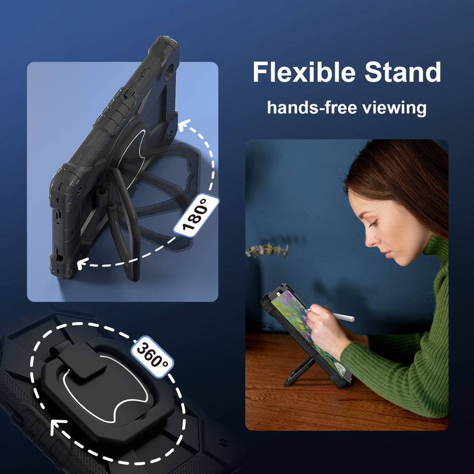 Étui pour tablette hybride robuste pour Samsung Galaxy Tab A9 8.7 pouces X110/X115/X117 avec support rotatif à 360 angles de vision multiples