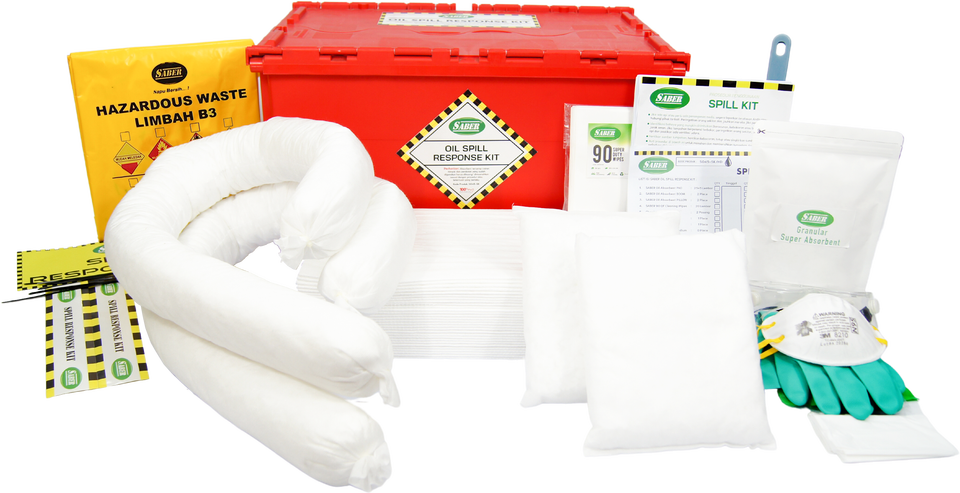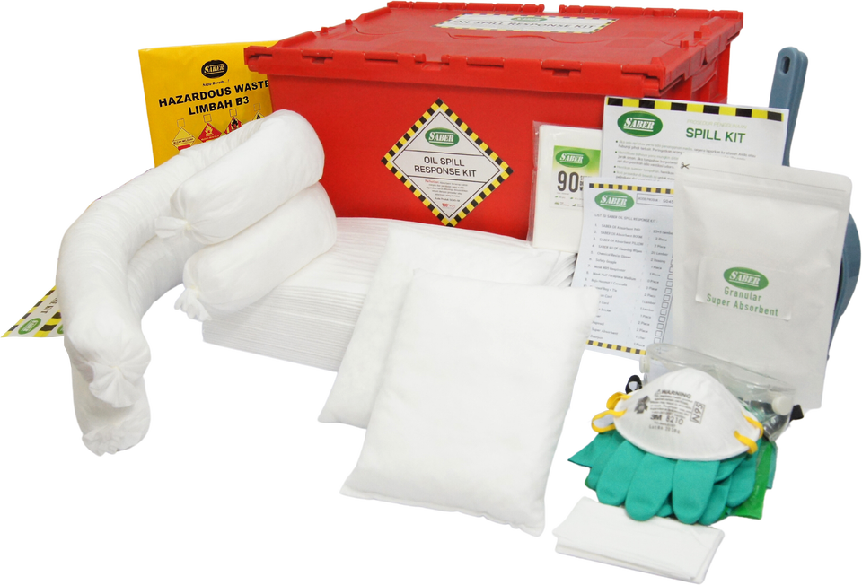 Kit anti-déversement d'hydrocarbures robuste SABER 45 litres avec conteneur robuste pour sites difficiles et interventions en extérieur