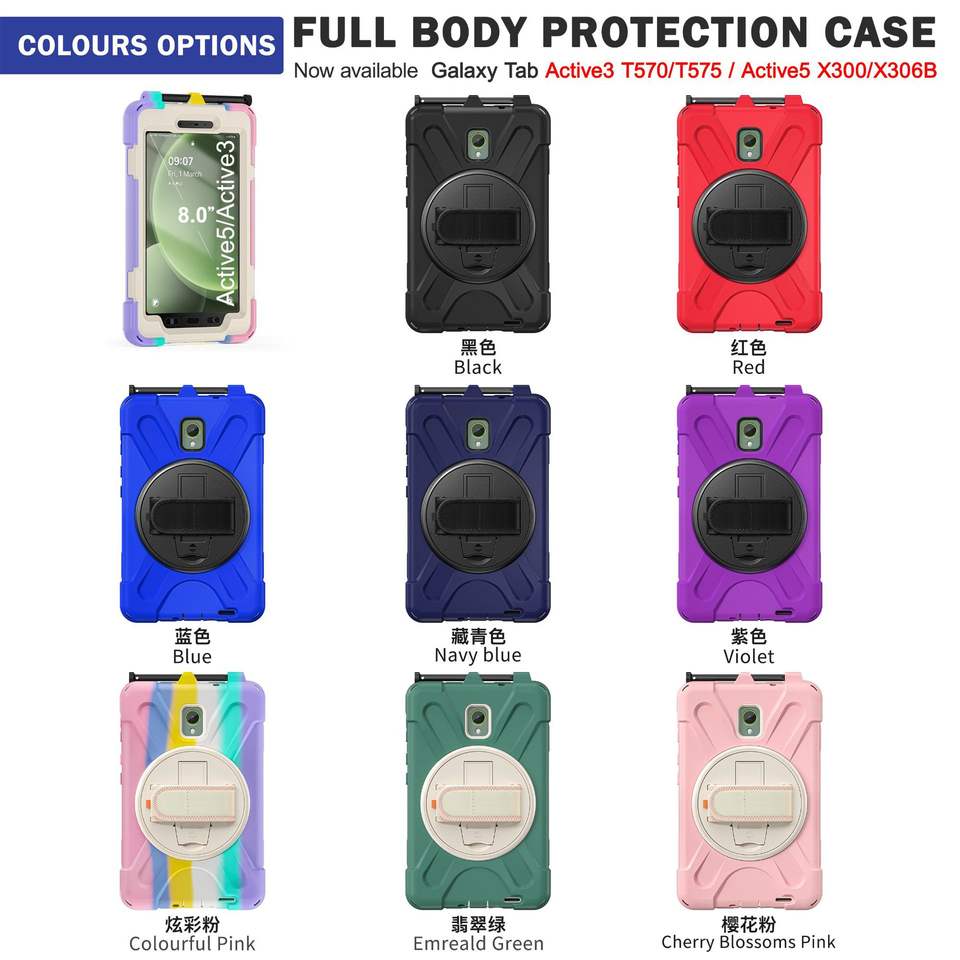 Étui robuste pour tablette Samsung Galaxy Tab Active 5 2024/Active 3 2020 8 pouces avec poignée de support 360 dragonne housse de protection