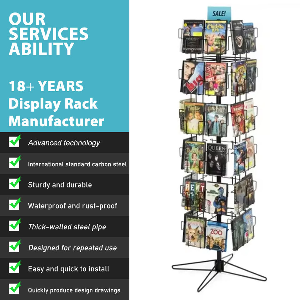 Support de présentation rotatif à 4 faces pour DVD et livres RuiMei en métal, revêtement en poudre noir pour rangement extérieur