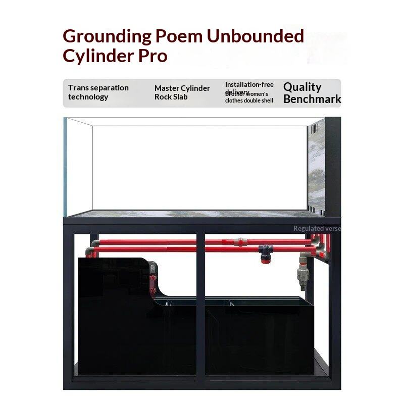 Nouveau réservoir sans bordures PRO de style industriel de Ruibit avec filtre inférieur et débordement latéral en dalle de roche, conçu pour les poissons rouges Ranchu élevés en rivière