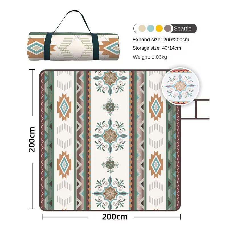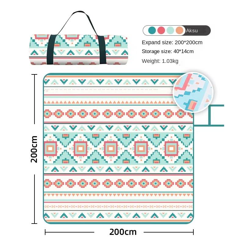 Tapis de pique-nique ultrasonique de style ethnique Ruiming, lavable en machine, imperméable, résistant à l'humidité, épaisseur 3 mm, carré, en Oxford, pour le camping