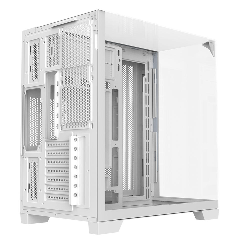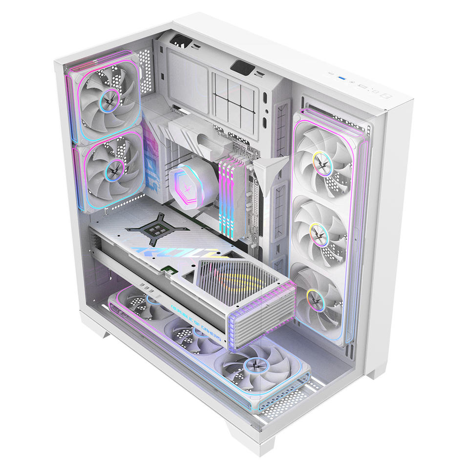 Boîtiers de PC de jeu Ruix O11Vision-White ATX BTF compatibles, vue complète latérale et supérieure en verre trempé, cabinet de jeu