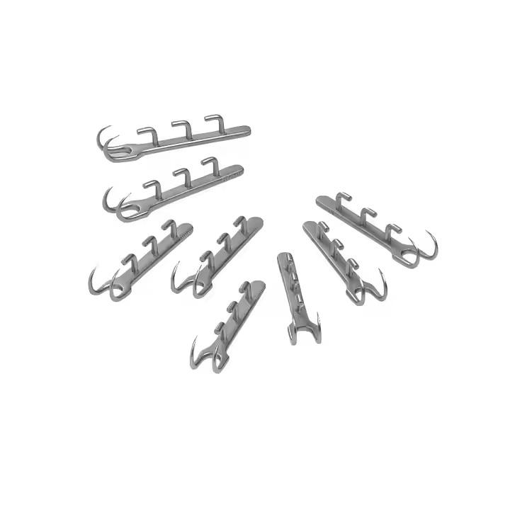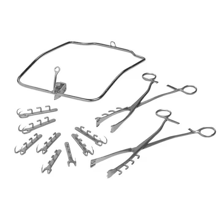 Ensemble d'instruments de rumenotomie 1 18x27cm 2 pinces Vulsellum 24cm 8 crochets de fixation 7cm acier inoxydable chirurgical vétérinaire