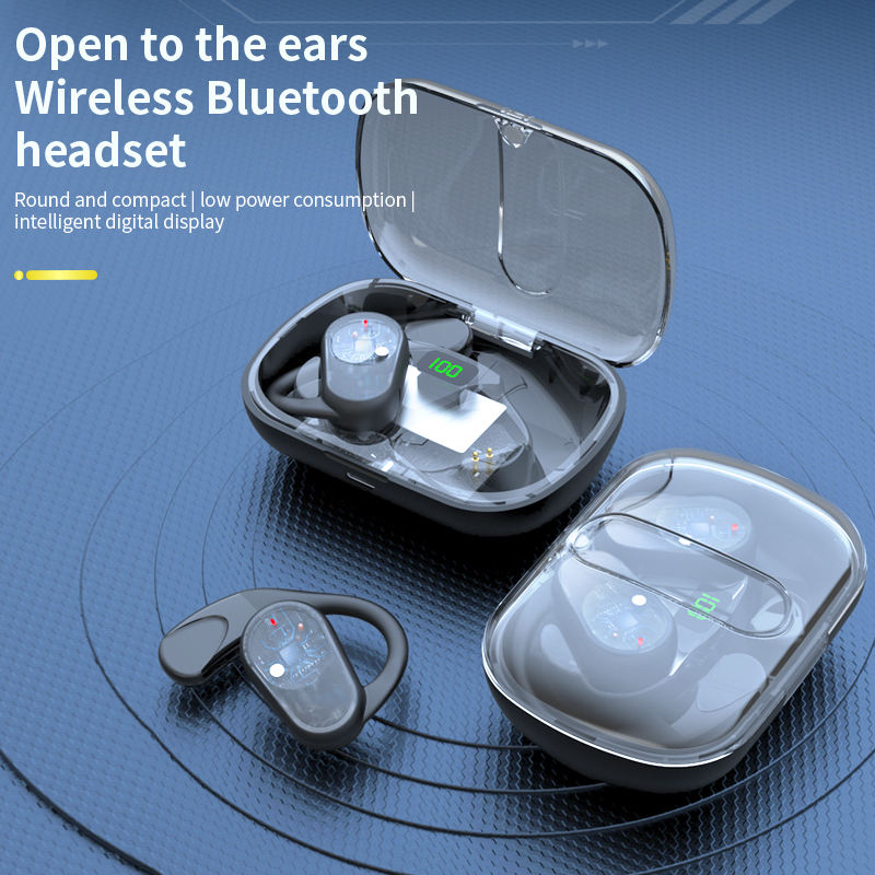 Écouteurs ouverts pour la course/le sport, design transparent, circuit imprimé visible, écouteurs à crochet d'oreille, emballage simple, écouteurs sans fil BT5.3