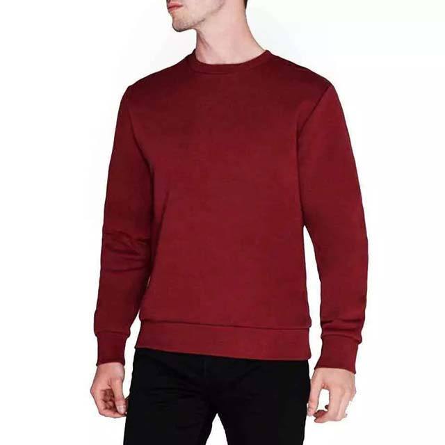 Running workout sweatshirt for men 100% Cotton Fleece Sweatshirts Comfortable Pullover High Quality Burgundy Color O Neck Basics