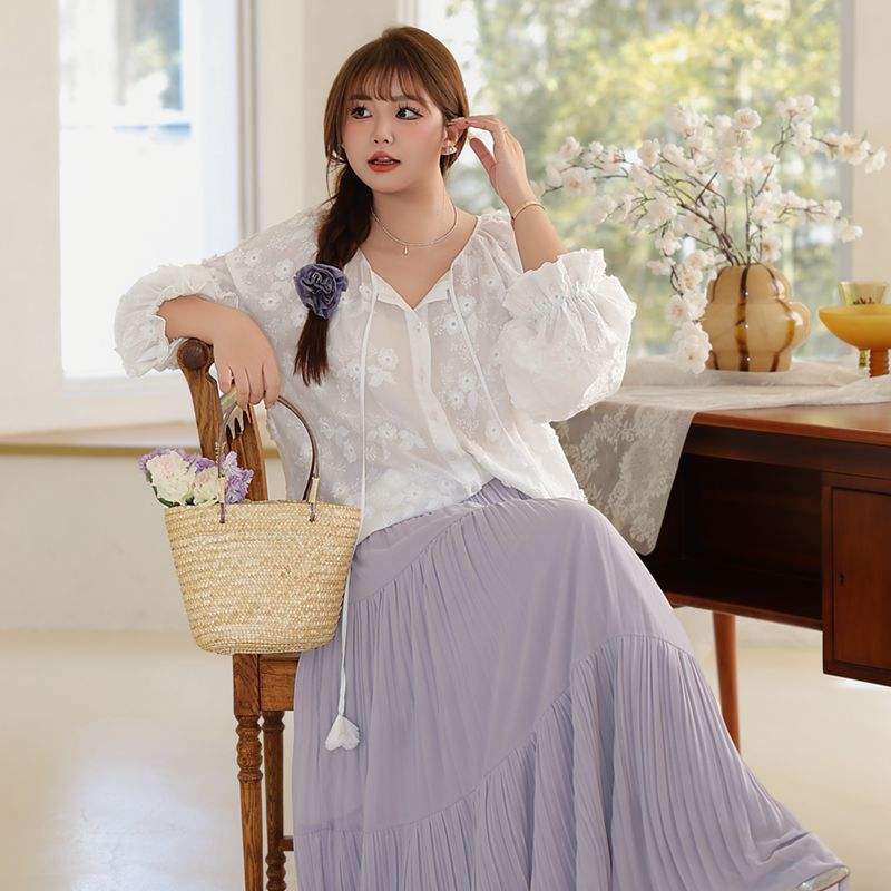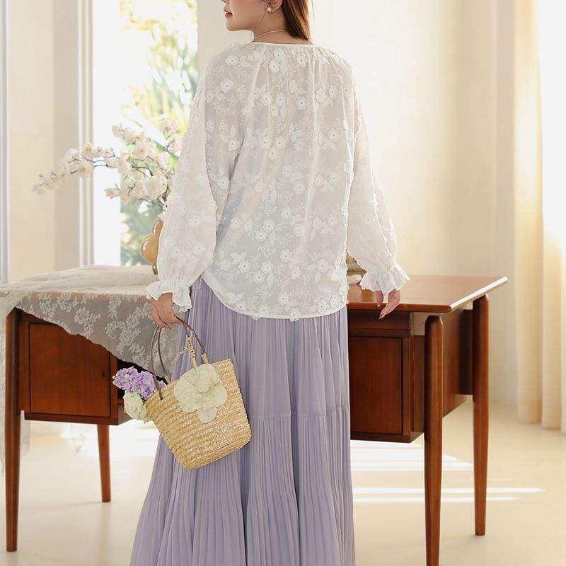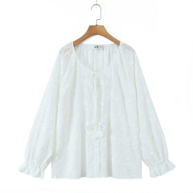 Chemisier brodé 3D floral Runqi en coton blanc grande taille ample à capuche style pastoral romantique pour femme N9156