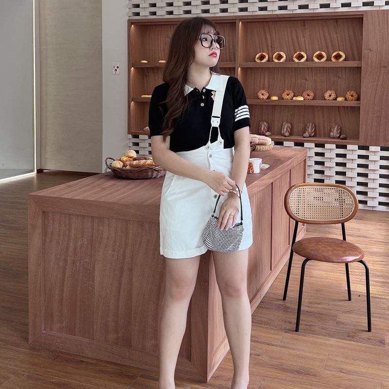 Salopette courte en jean taille haute asymétrique Runqi N8062 pour femme, grandes tailles, noire et blanche, boutonnée, style tendance