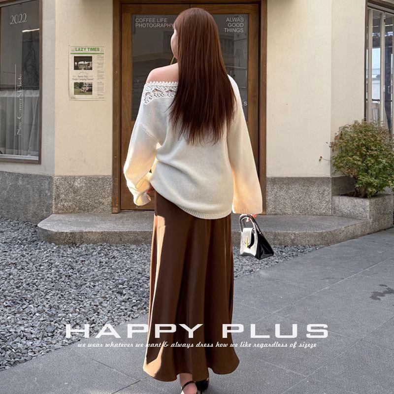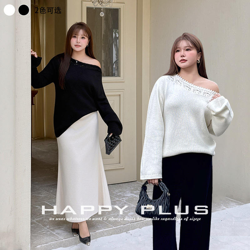 Pull en tricot ample à épaules dénudées Runqi, taille plus, automne-hiver, détail en dentelle, pull pour femme, manches longues, épaisseur moyenne