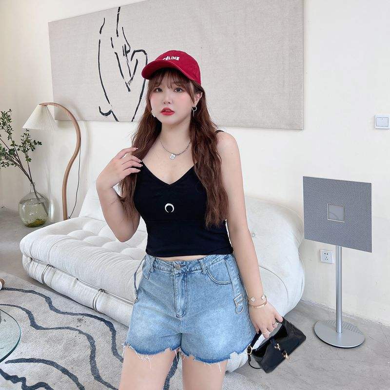 Runqi Camisole Grande Taille Col en V Élastique Débardeur Noir Blanc Coton Vêtements Casual pour Femmes N8328