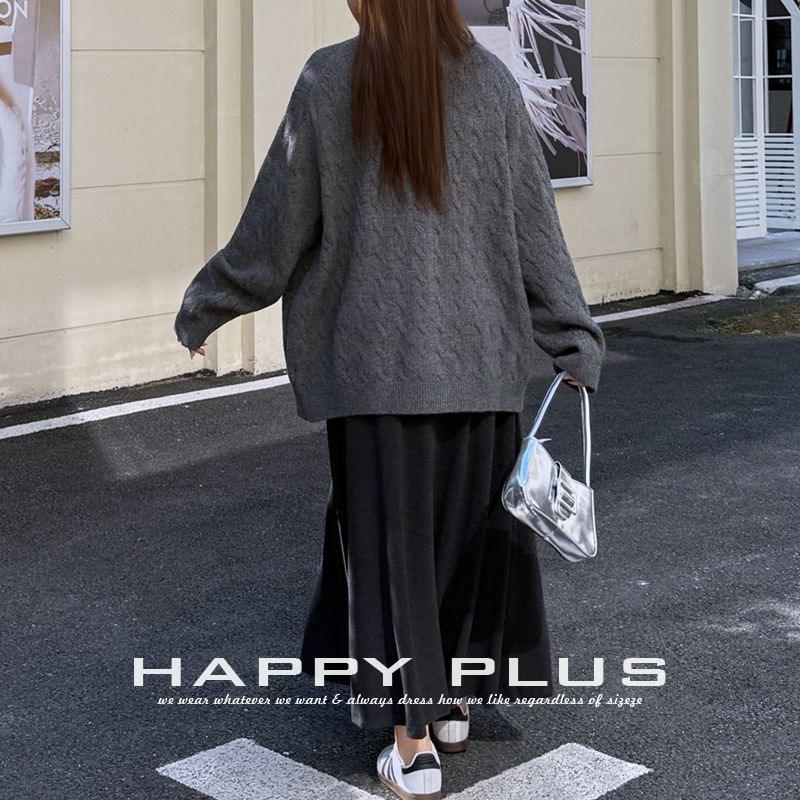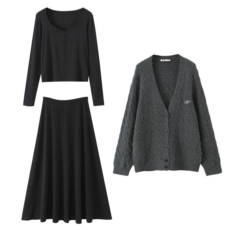 Ensemble trois pièces pour femmes Runqi, taille plus, haut noir, jupe grise, cardigan en tricot torsadé, tenue décontractée automne-hiver N9042