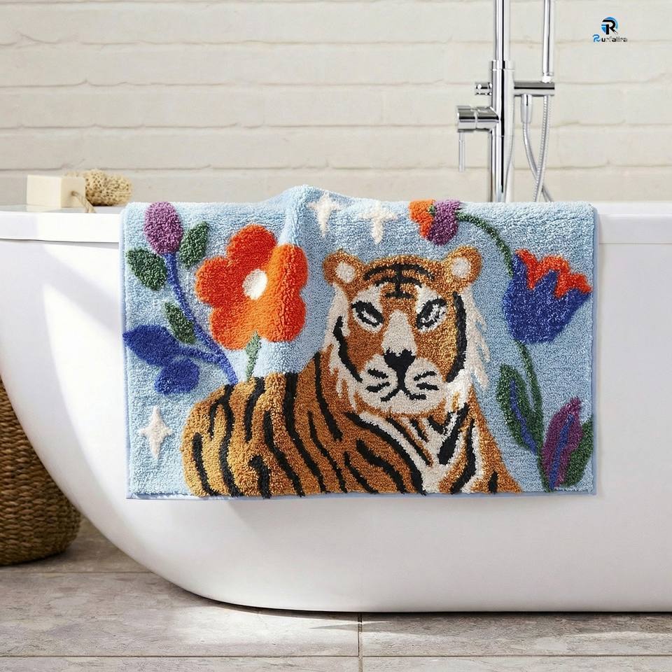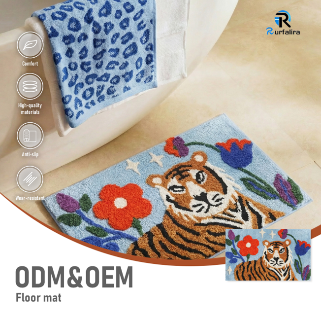 Tapis de bain doux, absorbant l'eau et antidérapant, motif tigre de la série Cartoon, fabriqué à la machine, personnalisé OEM, Rurfalira LYH-85