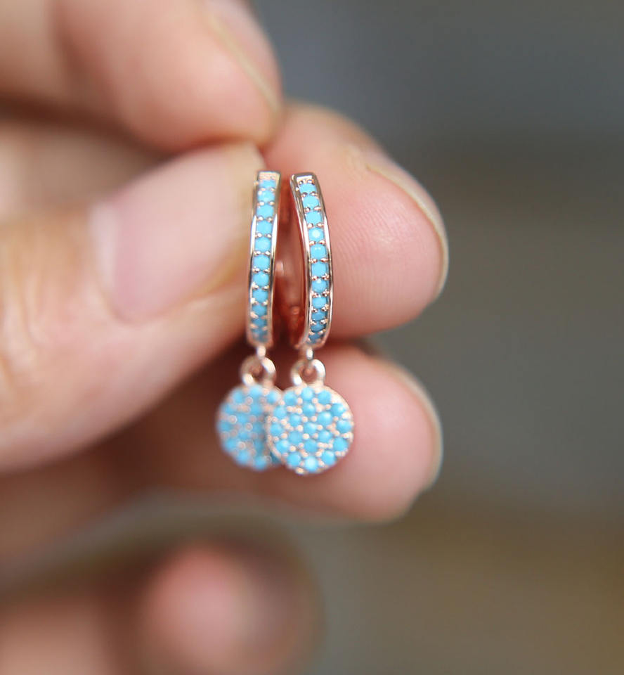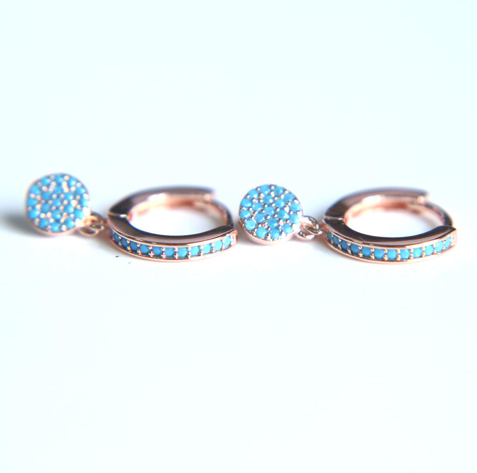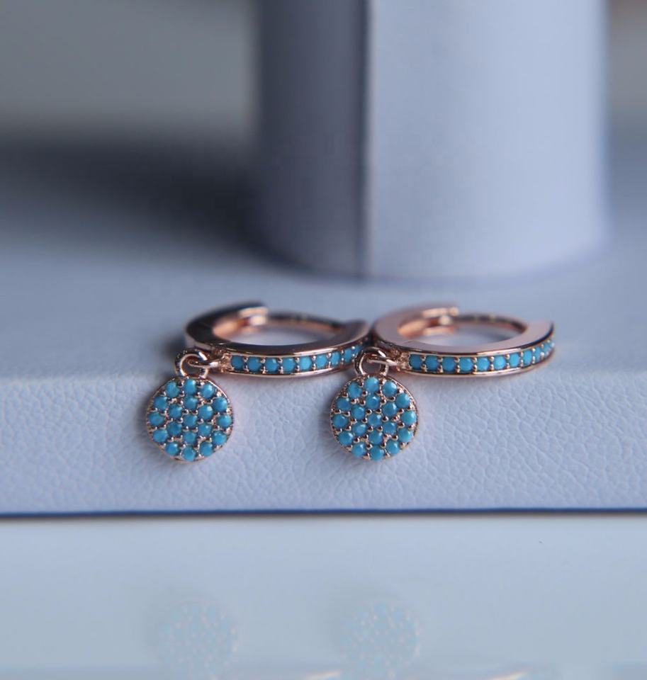 Boucle d'oreille bleue précipitée de haute qualité balancent Huggie cerceau pavé Turquoise plaqué or Rose CZ à la mode Disco charme femmes bijoux de mode