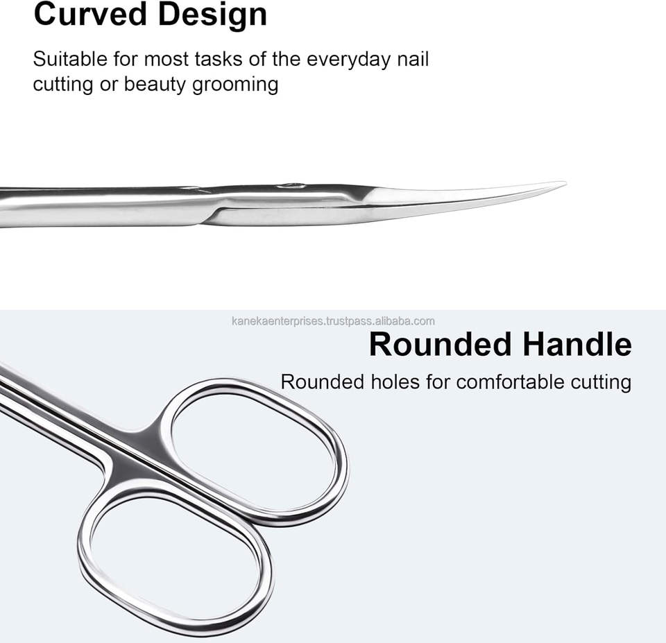 Ciseaux à cuticules de style russe de haute qualité, durables, avec logo personnalisé, en acier inoxydable, lame incurvée, ciseaux à ongles pointus pour la beauté des ongles