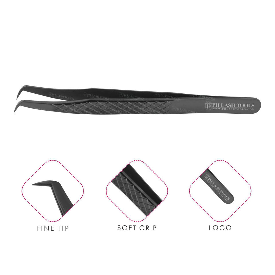 Vetus — pincettes pour Extension de cils, Volume russe 75 degrés, noires, avec Design diamant, étiquette privée, 1 pièce