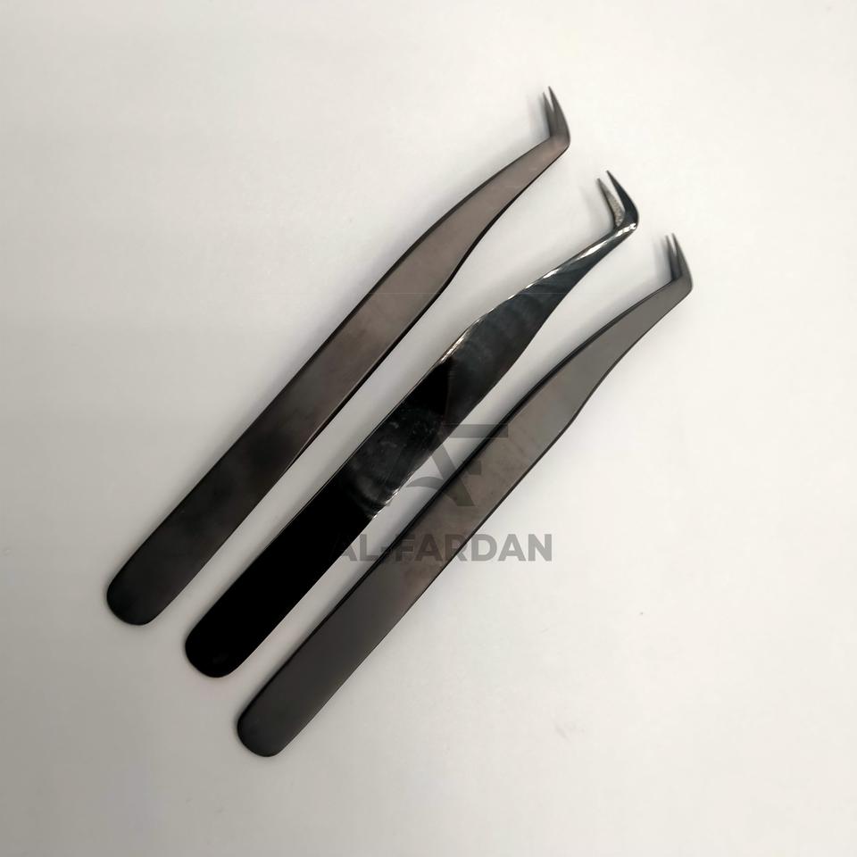 Pince à cils 90 degrés en acier inoxydable allemand noir mat pointu outil de cils de volume russe