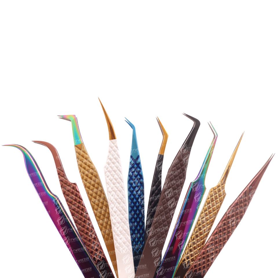 Volume russe Logo personnalisé pince à épiler Extension de cils outil de beauté en acier inoxydable pour l'isolement de la poignée de diamant faux cils