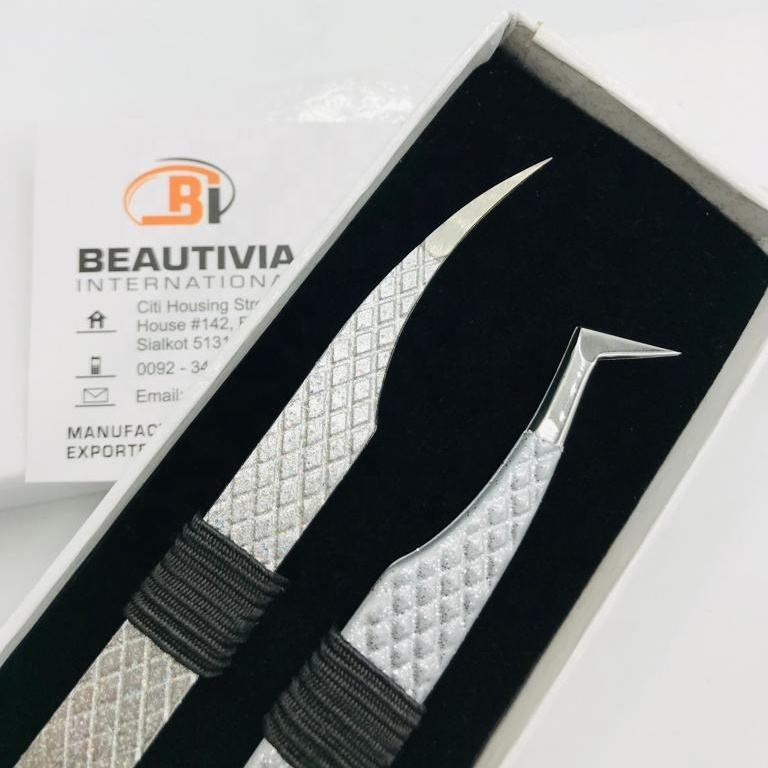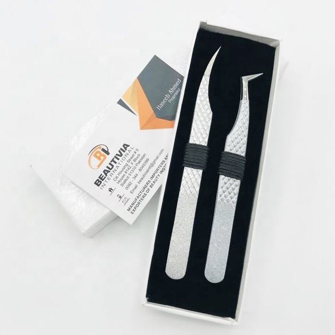 Volume russe et pince à épiler Silver Glitter Sparkle Diamond Grip Pince à épiler d'extension de cils durable