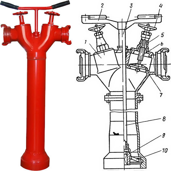 Bourdonnet de type russe, bouche d'incendie hors sol adaptée au raccordement de tuyaux d'incendie
