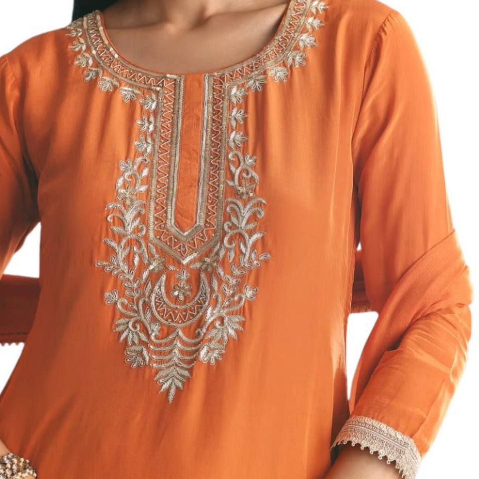 Rust Crepe Kurta Sharara Suit Wholesale avec Zardosi et Sequin Brodé Dupatta pour Cérémonies Festives Mariages et OEM