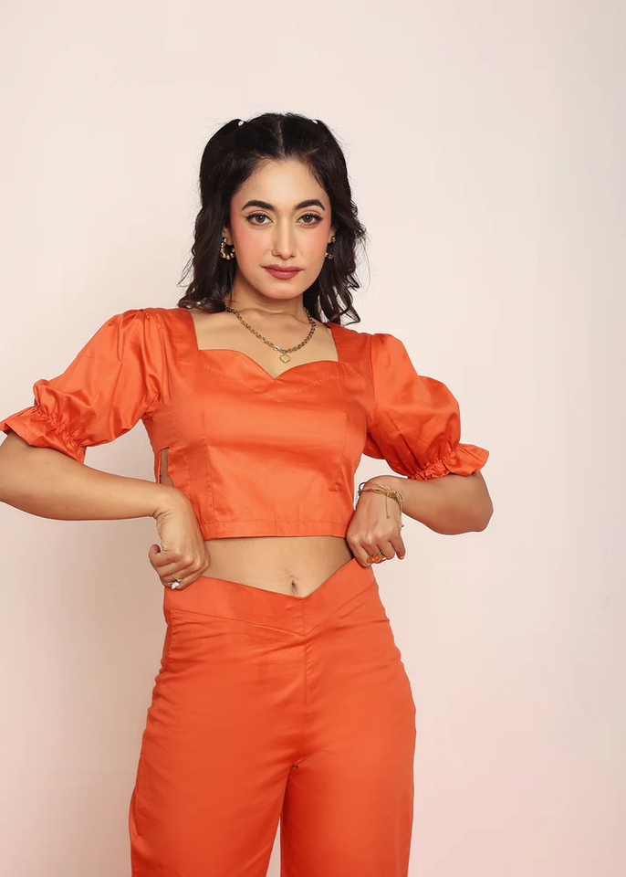 Haut court à découpes florales couleur rouille pour femme, chemisier d'été élégant, chic et décontracté pour les sorties et les fêtes