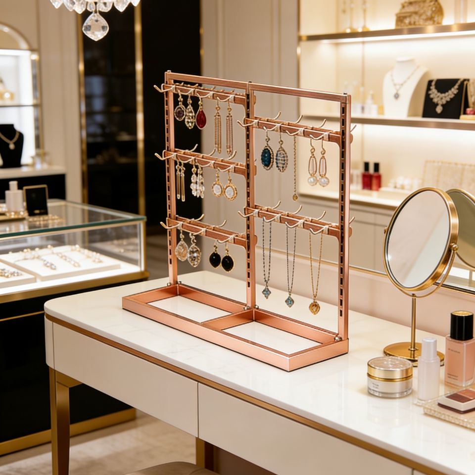 Support à bijoux en acier inoxydable avec peinture de cuisson, tubes en acier épaissis, finition brillante et lisse, couleur longue durée pour présentoirs de magasin