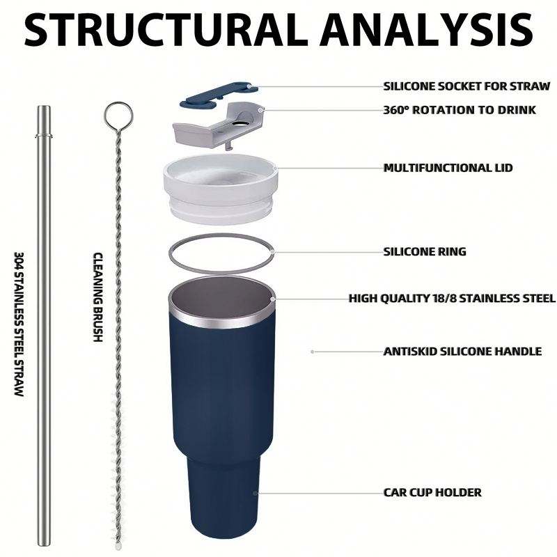 Gobelet isotherme en acier inoxydable antirouille 40 oz à double paroi avec couvercle anti-fuite