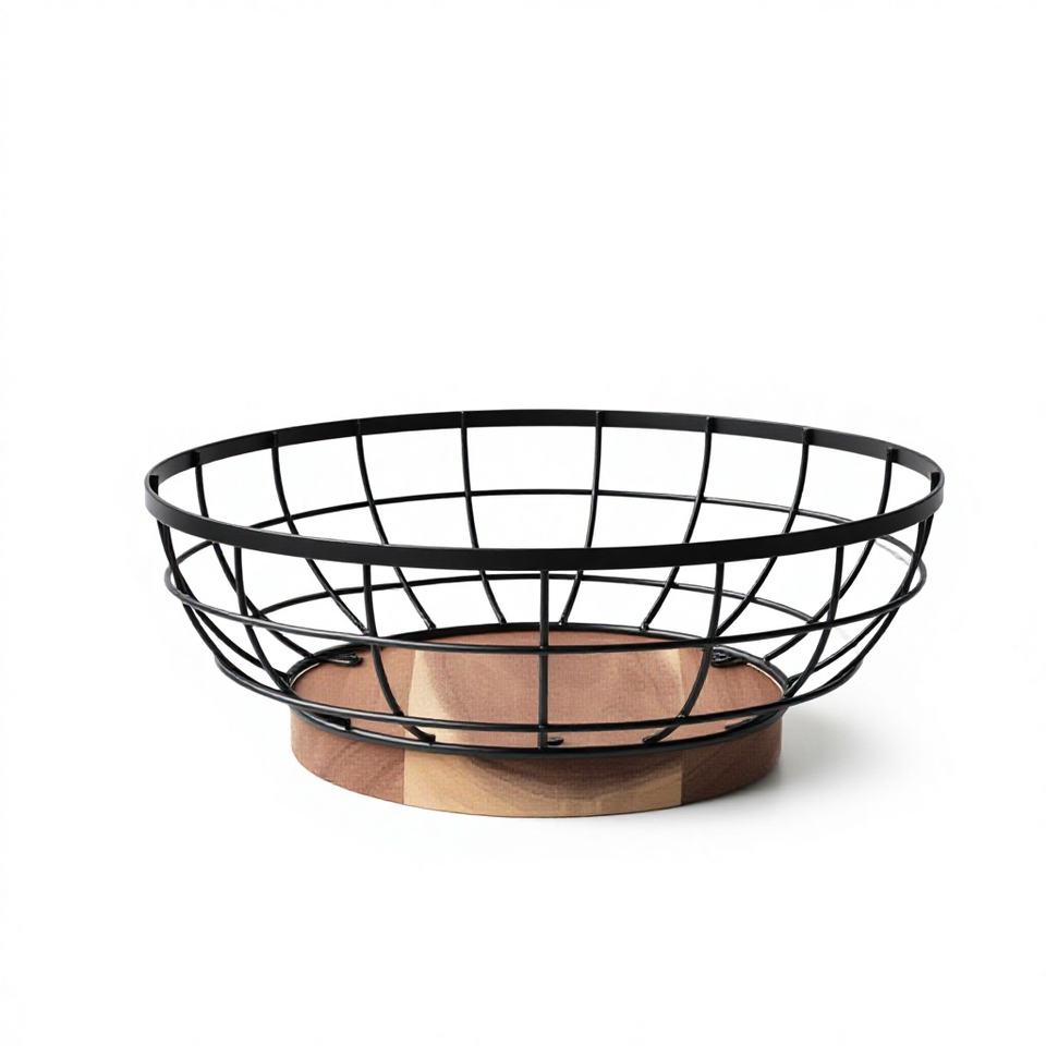 Panier de rangement en métal géométrique vintage résistant à la rouille et écologique avec poignées en bois, élégant organisateur d'étagère multi-usages