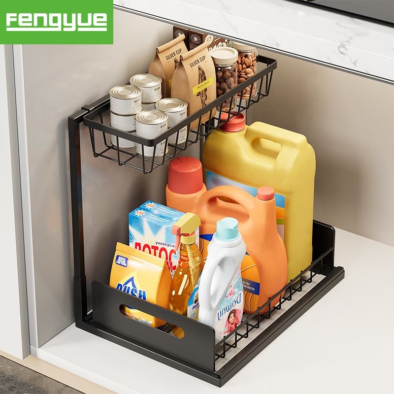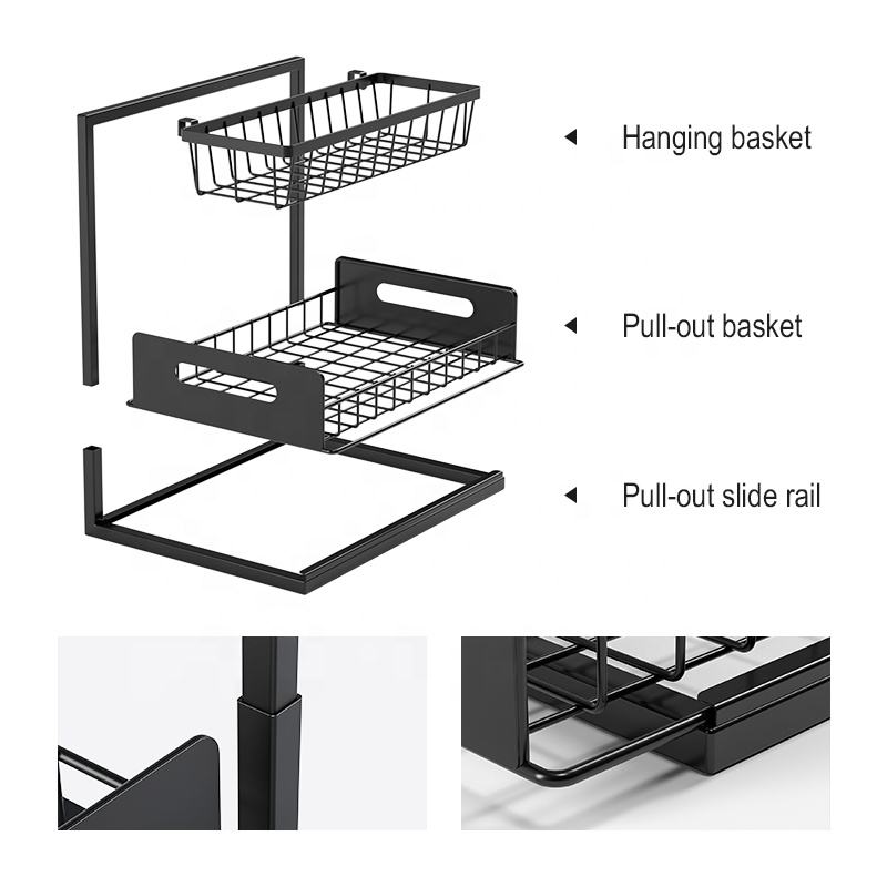 Étagère de rangement coulissante à double niveau antirouille sous l'évier, accessoires de cuisine, organisateur d'évier
