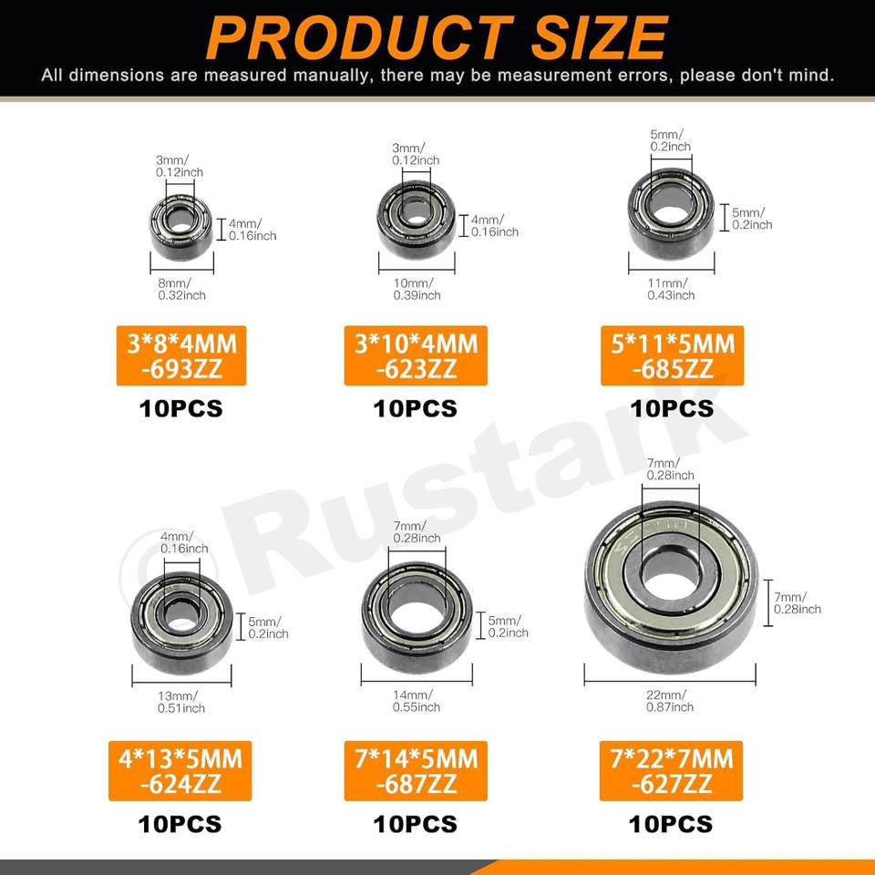Rustark 60 pièces Roulements à billes à gorge profonde en acier au carbone R-2105 6 tailles Double blindage Lubrifiés à la graisse ASIN B0DQPBFH6G
