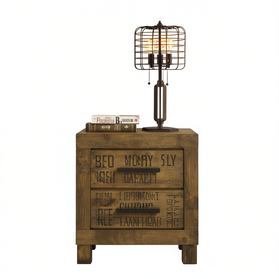Table de chevet rustique en bois à 2 tiroirs, brun doré, mobilier de chambre moderne, unité de rangement écologique pour la maison