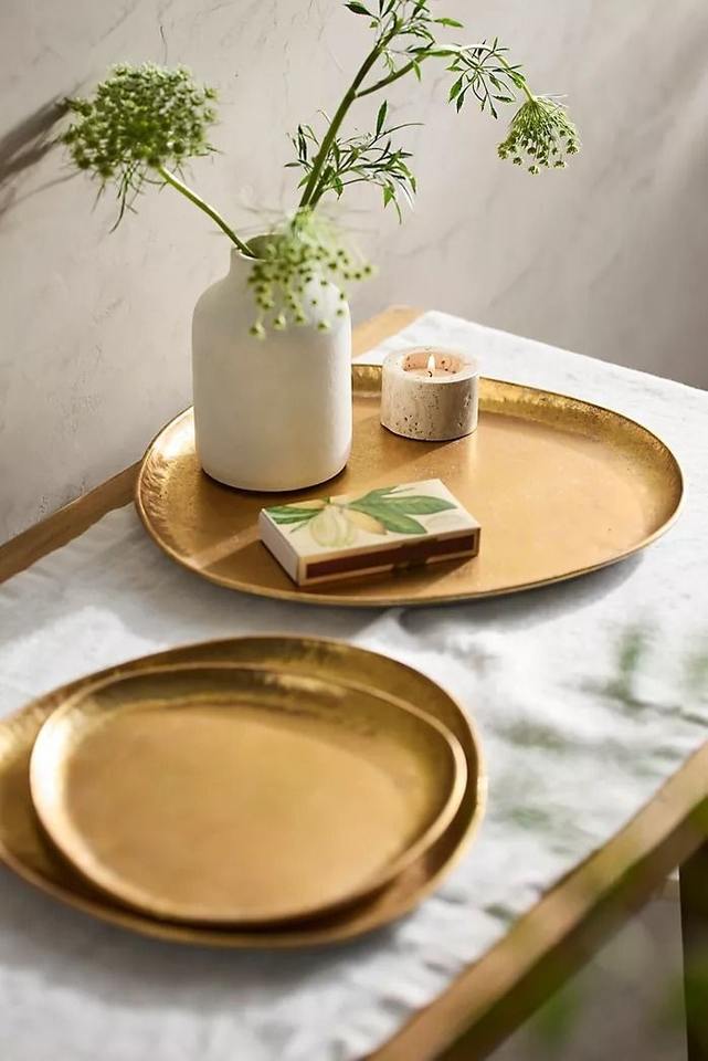 Plateau décoratif de Ramadan en métal antique rustique avec des détails fabriqués à la main parfaits pour la ferme et les maisons traditionnelles