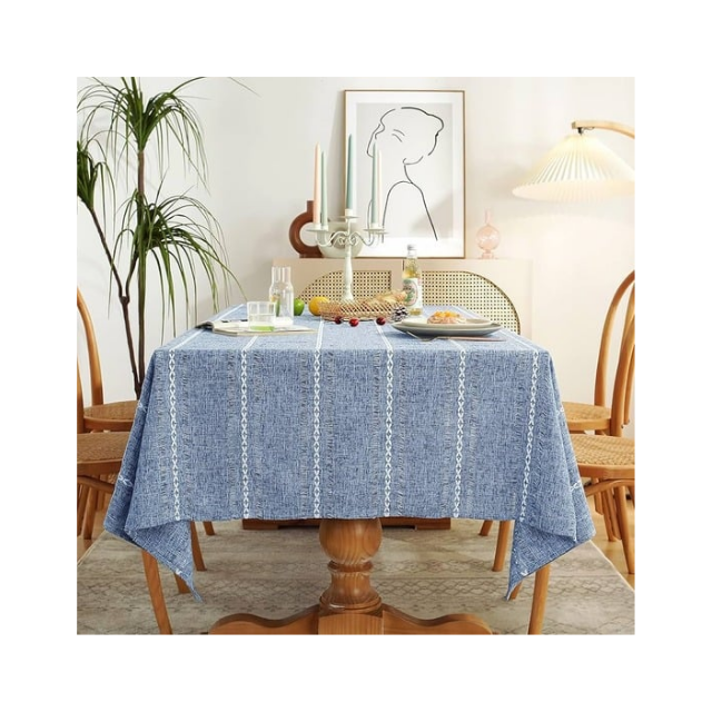 Nappe de table rustique en mélange de jute bleu 70x108 pouces, durable, certifiée ISO 14001, en fibres naturelles, texture robuste, pour décoration de table de ferme