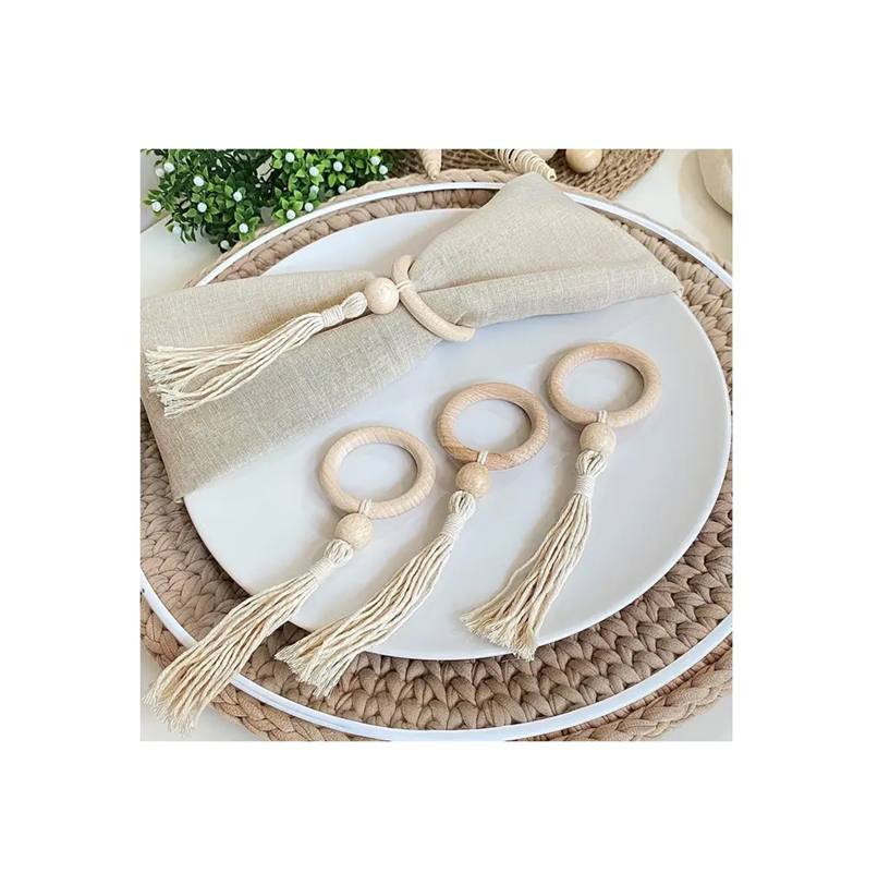Rustique Boho En Bois Décor Perle Serviette Anneau À La Main Ferme Guirlande pour Chambre ou Table pour La Décoration Intérieure article