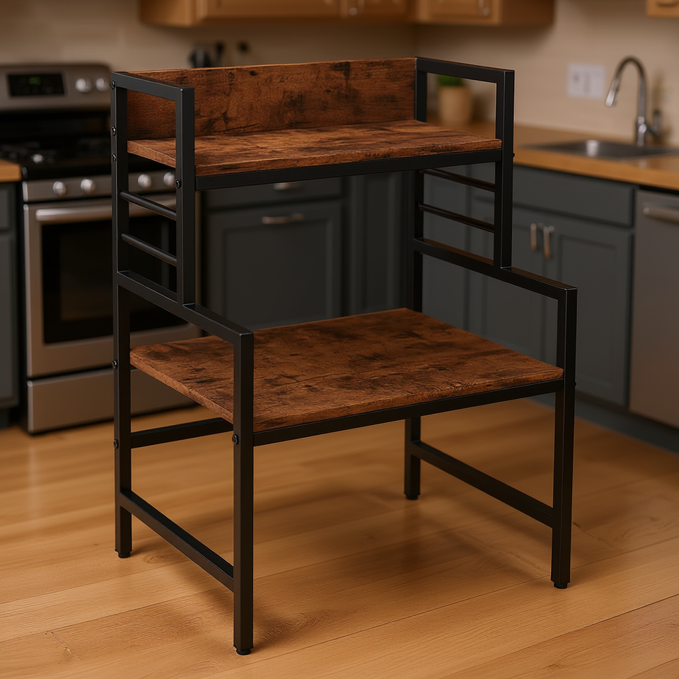 Support de micro-ondes rustique marron à 3 niveaux, structure métallique, rangement de cuisine, étagères autoportantes robustes