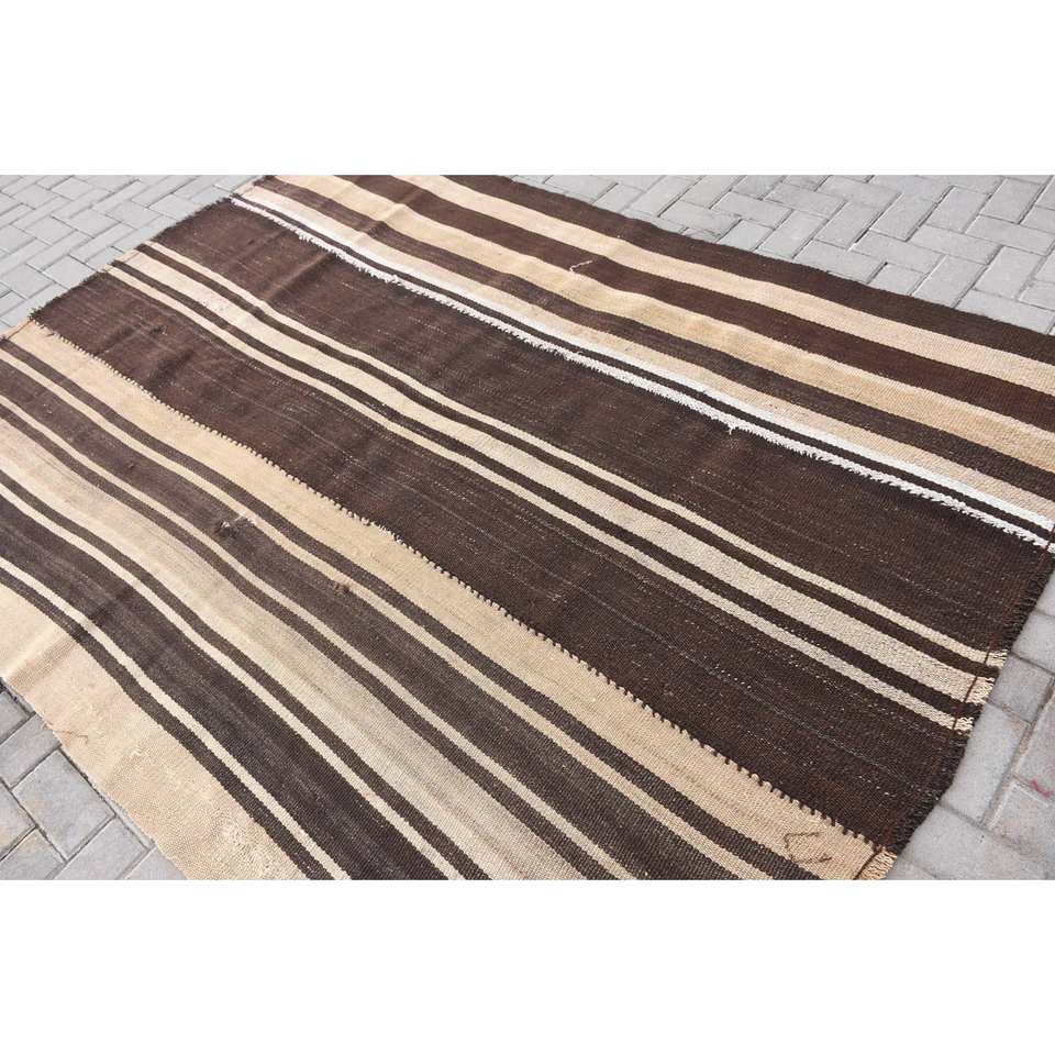 Rustique marron Beige 6x8.2ft tapis de laine fait main turc grande surface Rectangle abstrait Patchwork Latex pour couloir utiliser tapis de chambre