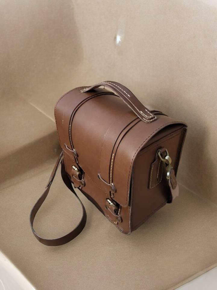 Sac pour appareil photo en cuir marron rustique conçu pour les appareils photo DSLR sans miroir et les appareils photo argentiques