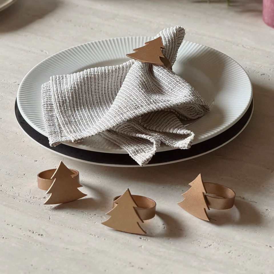 Anneaux de serviette en similicuir brun rustique pour sapin de Noël – Décoration de table de dîner des fêtes – Porte-serviettes minimaliste en faux cuir en forme de sapin