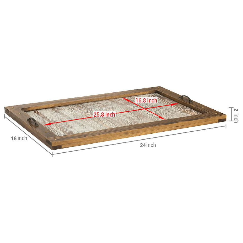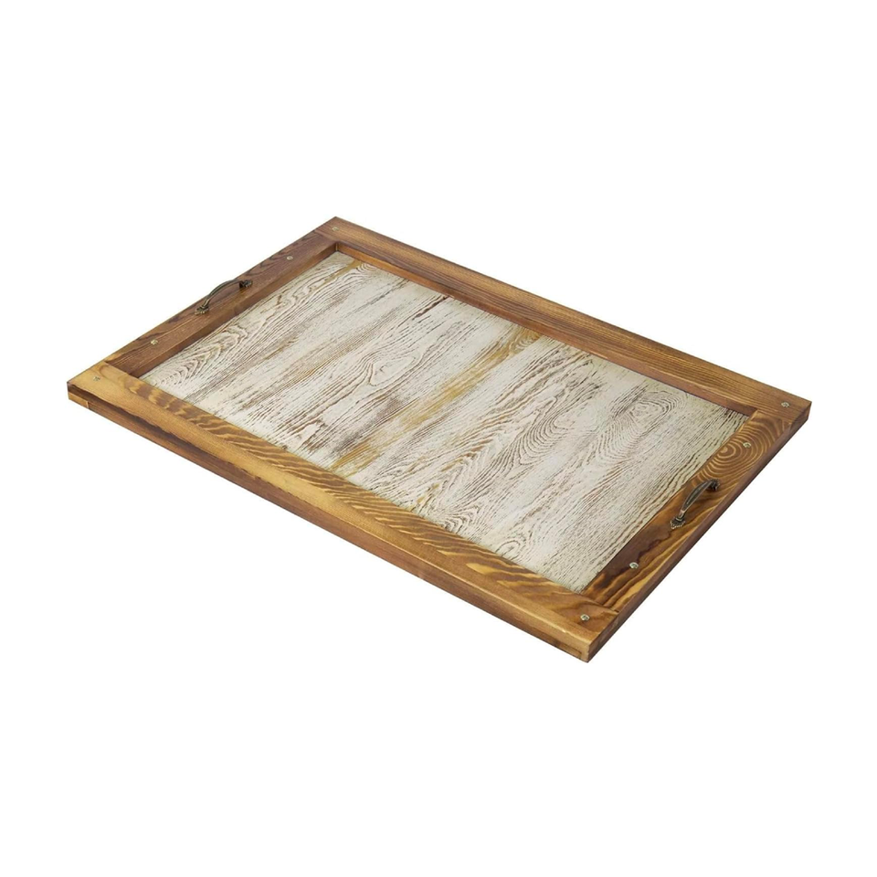 Wooden Large Size Serving Tray With Metal Handles