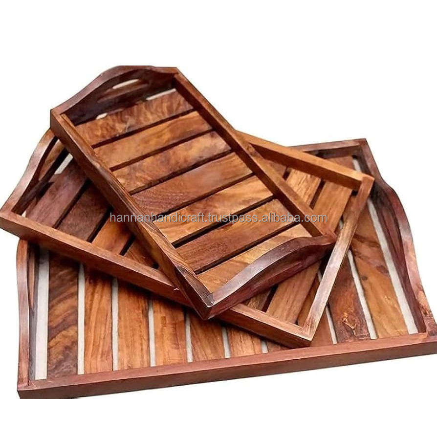 Plateau rectangulaire en bois brun rustique pour le petit-déjeuner au lit, le thé, le café, les boissons, les collations, la cuisine, la salle à manger et le bureau