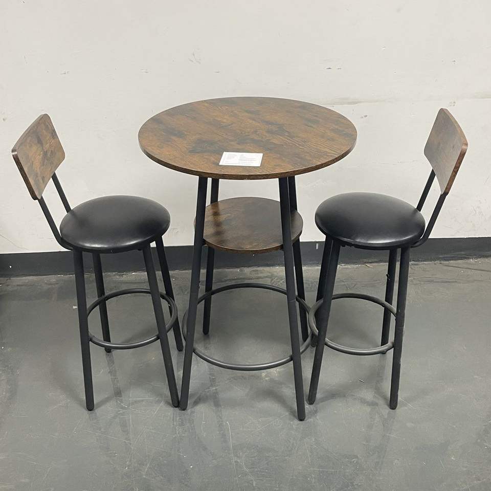 Ensemble de tabourets de bar ronds rembourrés marron rustique avec dossier et étagère, largeur 23,62'' profondeur 23,62'' hauteur 35,43''