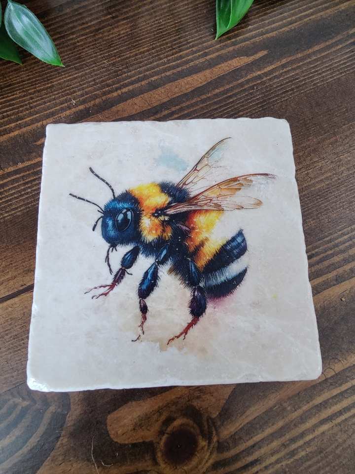 Sous-verres rustiques en marbre Bumblebee, pierre roulée, art animalier, décoration de table