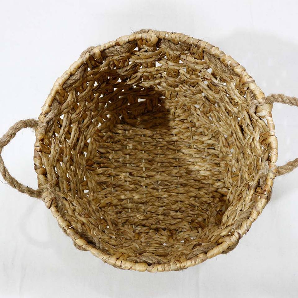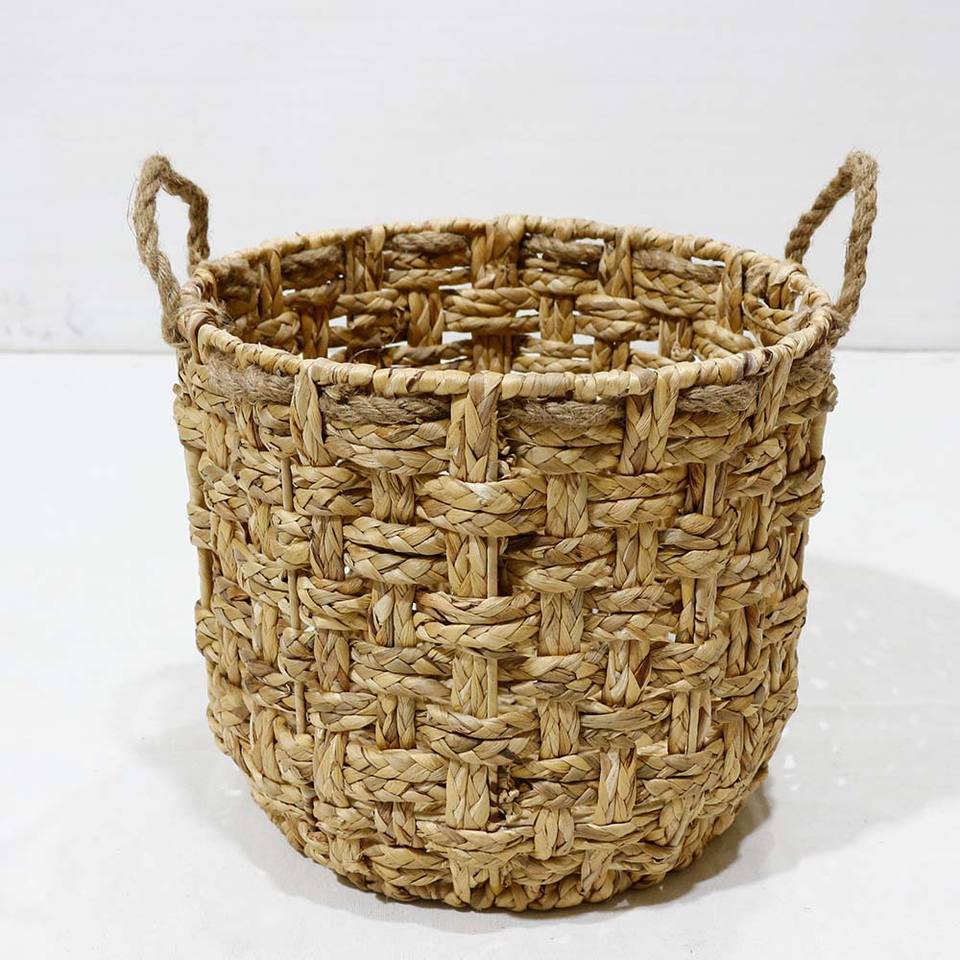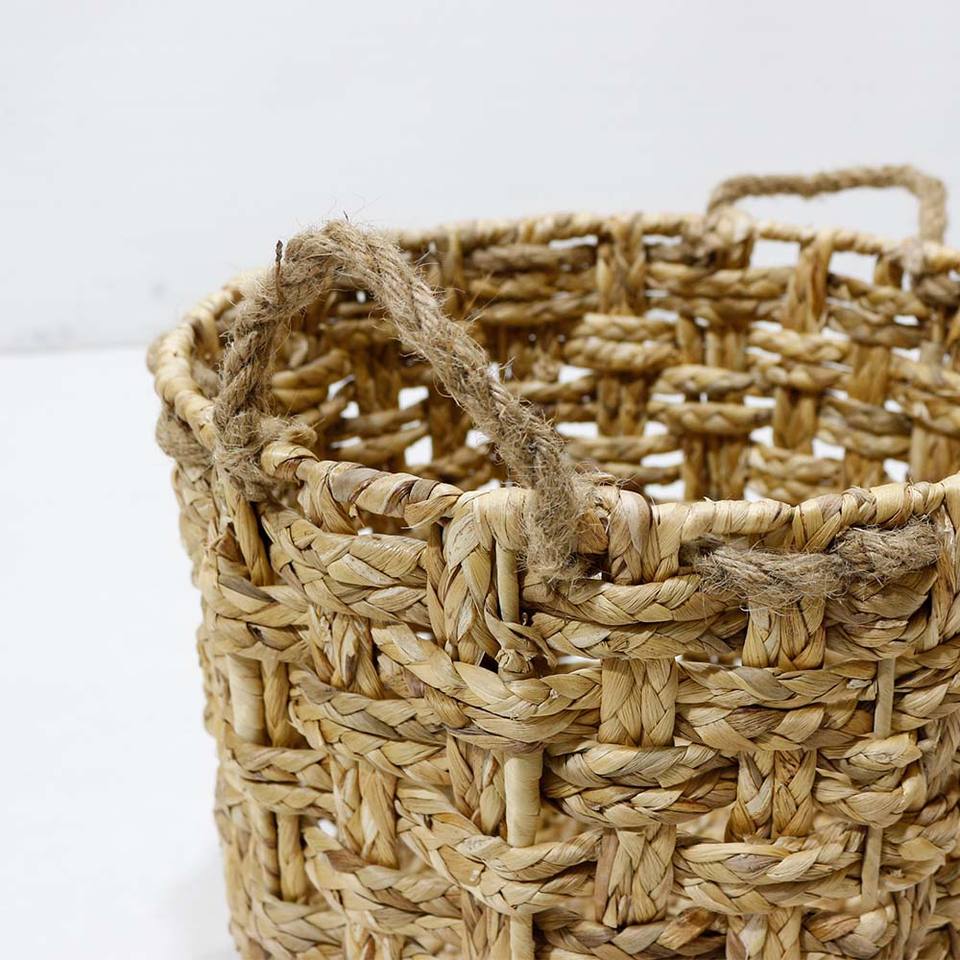 Panier de rangement rustique en jacinthe d'eau à carreaux avec poignées en corde