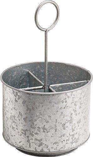 Porte-ustensiles de table en métal finition cuivre rustique, trois compartiments séparés et anneau de transport central pratique pour couverts
