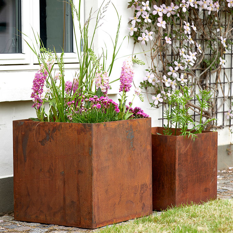 Jardinière rustique en acier Corten pour la plantation de légumes et de fleurs sur patio extérieur et balcon
