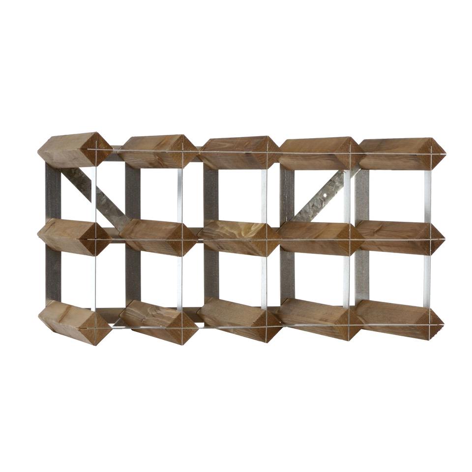 Système de rangement pour bouteilles de vin en bois de chêne foncé rustique et fer, sur pied, classique, moderne, portable et pliable, capacité 3L