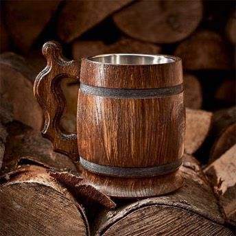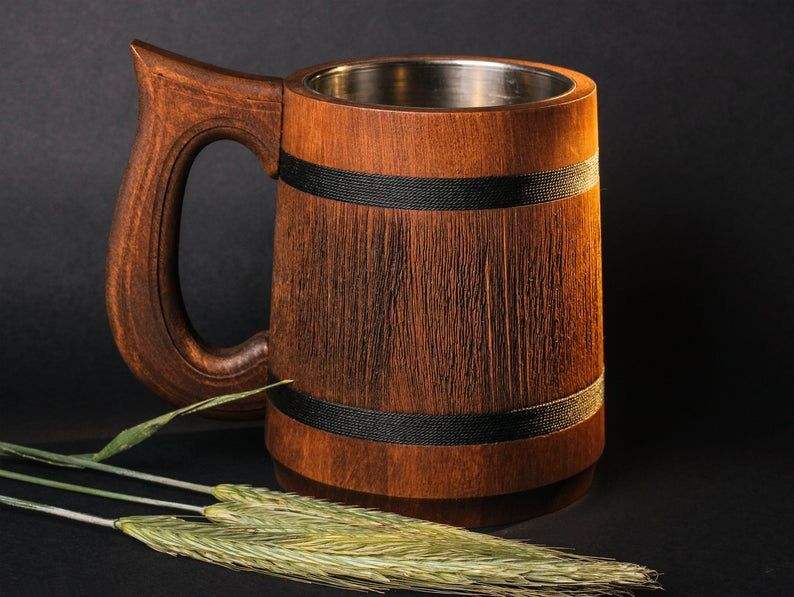 Mug rustique en bois foncé avec intérieur en acier