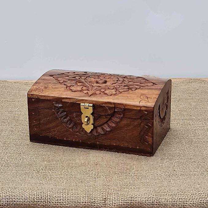 Boîtes de rangement modernes en bois gravé rustique, multi-usages, avec couvercle à charnière, pour bijoux, souvenirs, décoration vintage, cadeau de mariage
